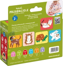 Odkrijte izobraževalni set sestavljank Naši Prijatelji, ki vsebuje 5 štiridelnih sestavljank z barvnimi podlagami za lažje sestavljanje:
