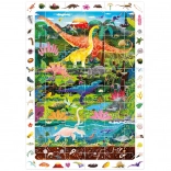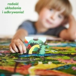 Odkritelske puzzle Dinozavri vsebujejo 60 koščkov, ki sestavijo očarljivo sliko z dinozavri. Ilustracijo obdaja okvir, poln podrobnosti, ki jih otroci radi odkrivajo in primerjajo s sliko. Del pakiranja je tudi izobraževalni plakat, na katerem otroci najdejo zanimivosti iz sveta dinozavrov.