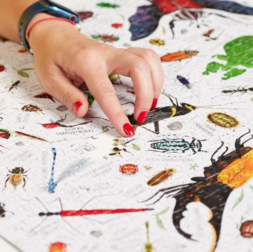 Odkrijte lepoto in raznolikost fascinantnih žuželk z vsega sveta s sestavljanko PUZZLOVE. Ta set s 1000 kosi in avtorsko ilustracijo je izdelan na Poljskem ter ponuja prijetno relaksacijo in vadbo uma; po sestavi nastane slika v dimenzijah 48 × 68 cm.