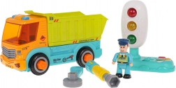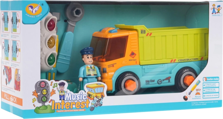 Del seta je interaktivni semafor s svetlobnimi (rdeča, rumena, zelena) in zvočnimi učinki (melodije, hupa, zagon motorja, alarmi), ki skozi igro uči prometne situacije. Dva izvijača pomagata otrokom razstaviti avto na dele in ga spet sestaviti – tako razvijajo fino motoriko, potrpežljivost in tehnično razmišljanje.