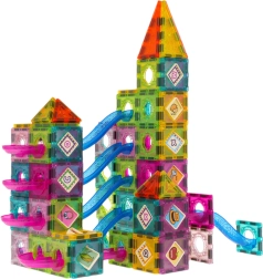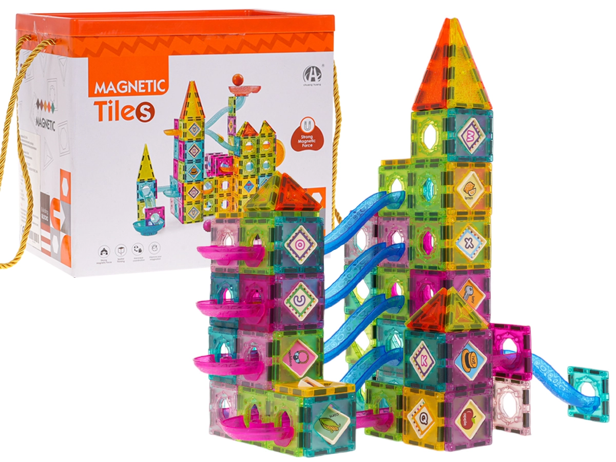 Odkrijte ustvarjalni svet magnetnih sestavljank za otroke od 3 let. Ta bogat set s 139 deli omogoča gradnjo stabilnega krogličnega tobogana v različnih različicah. Deli iz kakovostne, gladke plastike se zlahka povezujejo s pomočjo močnih magnetov. Priloženi so tudi slikovni priročnik in praktični prenosni škatli z razvrščevalnikom oblik za shranjevanje.