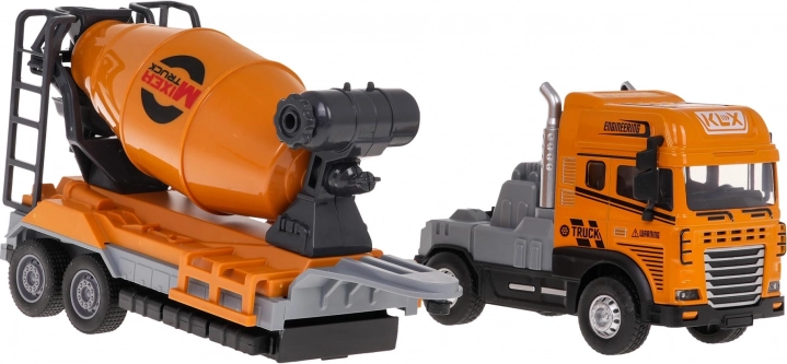 Zaženite gradbišče na polno z robustnim mešalcem v merilu 1:24. Zaradi kovinske kabine in kakovostnega plastičnega podvozja je igrača vzdržljiva in pripravljena na vsakodnevne pustolovščine. Gumijasti tekalni sloj koles zagotavlja odličen oprijem, zadnji pogon prinaša gladko vožnjo, odstranljiv priklopnik pa razširja možnosti igre.