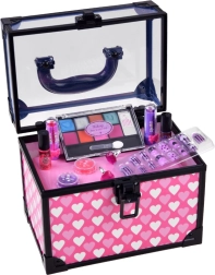 Privoščite mali modnici njen lasten beauty kotiček. Zapiralni plastični kovček s prozornim pokrovom in ročajem shrani vse zaklade na enem mestu ter je idealen za potovanja in domačo igro. Barvni ličilni dodatki so zasnovani za otroke, da lahko varno preizkušajo prve stilizacije.