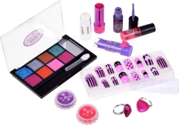 Set vsebuje vse za popolno preobrazbo: kremna senčila z aplikatorjem, bleščeče glosse in šminke za ustnice, lake za nohte, samolepilne konice z gotovimi vzorci ter ljubke prstančke v obliki srčkov. Igra z ličili razvija fino motoriko, občutek za barve in spodbuja samoizražanje.