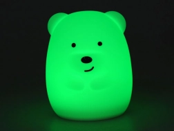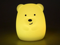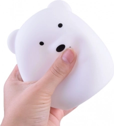 Ta silikonska lučka v obliki medvedka je zasnovana za varnost in udobje otrok. Mehke, zaobljene oblike in prijeten material zagotavljajo, da je lahko blizu posteljice in jo lahko otrok tudi objame. Lučka ponuja 9 barv svetlobe in več pomirjujočih načinov, tako da vedno preprosto ustvarite pravo vzdušje za branje, igro ali spanje.