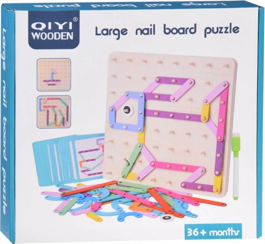 Odkrijte ustvarjalno igro, ki razvija otroško domišljijo in spretnosti: lesena montessori mozaika z dvostransko tablo in barvnimi paličicami. Otroci lahko po predlogah ali lastni domišljiji sestavljajo like na leseni plošči s čepki, na drugi strani pa vadijo pisanje in risanje s suho brisljivim flomastrom. Ta igrača podpira fino motoriko, koordinacijske sposobnosti, logično razmišljanje in kreativnost – ter zabava za dolge ure.