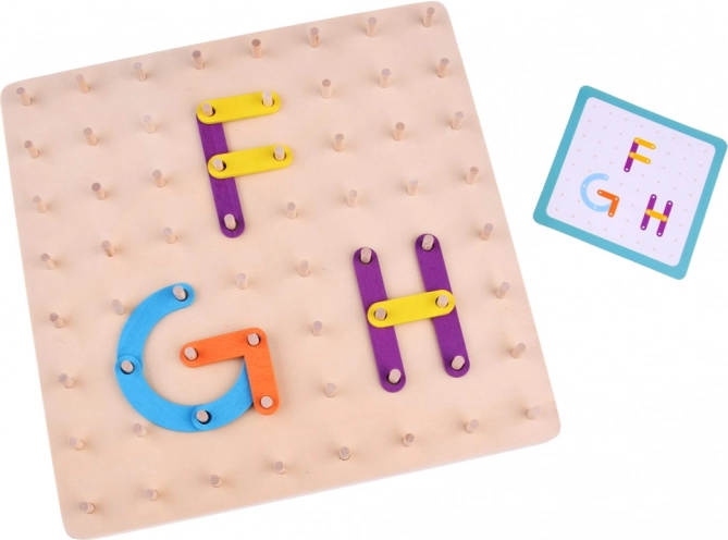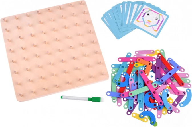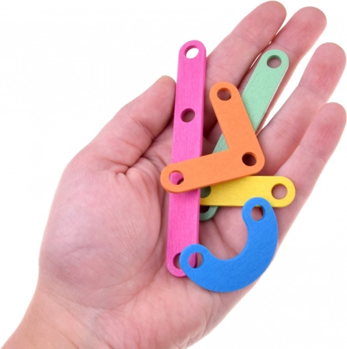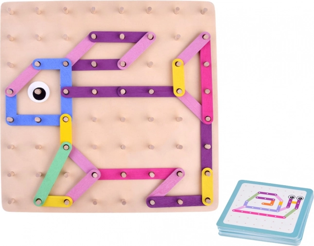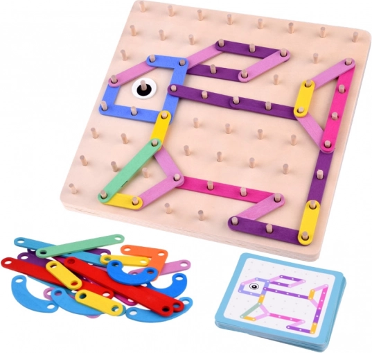 Barvne paličice različnih dolžin se polagajo na ploščo s čepki po predlogah ali lastni domišljiji. Odlična vadba fine motorike in prostorske predstavljivosti.