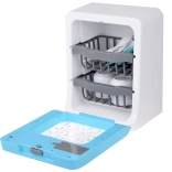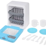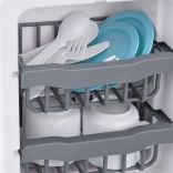 Ta otroški pomivalni stroj v igro prinaša realistične elemente: od šumenja vode in zvoka izpiranja/sterilizacije do signalizacije konca programa. Zahvaljujoč senzorični plošči si mali pomočniki zlahka izberejo način in čas. Odpiralna vrata in dvonivojska koša omogočata udobno vstavljanje krožnikov, skodelic in pribora.