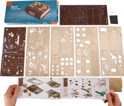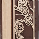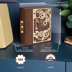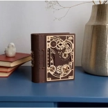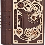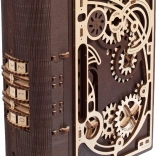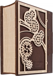 Knjiga skrivnosti UGEARS je inteligentna združitev oblikovalske dekoracije in praktičnega skrivališča. Zahvaljujoč sofisticiranemu mehanizmu z zobniki in številčniku na hrbtu se odpira s trimestno kodo, po posebnem postopku pa tudi brez poznavanja kombinacije. Lasersko izrezani deli v kombinaciji svetlega in temnega lesa dajejo modelu izrazit steampunk značaj.