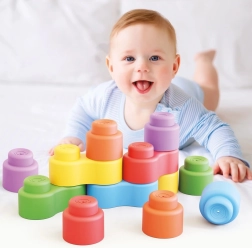 Odkrijte čar ustvarjalne igre z gradbenim kompletom Momy Soft, ki je posebej zasnovan za najmlajše. Zahvaljujoč mehkemu in prijetnemu materialu je rokovanje s koščki enostavno in varno. Otroke navdušijo žive barve in zanimive oblike združljivih koščkov, ki spodbujajo njihovo ustvarjalnost.