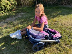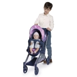 Vrtljiva sprednja kolesa, nastavljiva strehica in lahka, zložljiva konstrukcija zagotavljajo gladko vožnjo doma in na prostem ter preprosto shranjevanje v omaro ali avto.