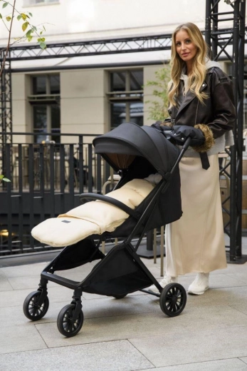 Zahvaljujoč nepremočljivi tkanini in zadrgam na obeh straneh hitro prilagodite toplotno udobje in dostop do otroka. Kapuca z odstranljivim krznom nudi dodatno zaščito pred neugodnim vremenom. Spodnji del lahko z enim gibom odpnete in uporabite kot majhno priročno torbo za nujne potrebščine na vsakodnevnih sprehodih.