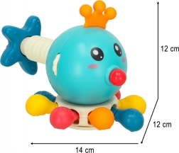Hobotnica je izdelana iz trpežnega ABS in mehkega TPE, primernega za grizenje. Varna izvedba in čvrsta konstrukcija zagotavljata dolge ure brezskrbne igre doma in v kadi.
