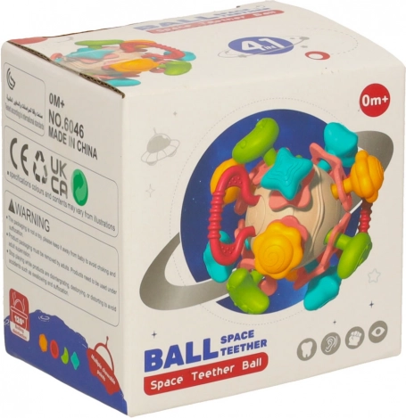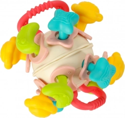 Silikonski deli služijo kot varno grizalo, ki olajša občutljive dlesni. Žogica motivira otroke k prijemanju, obračanju in prestavljanju iz roke v roko, s čimer prispeva k razvoju fine motorike ter usklajenosti oko–roka.