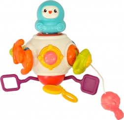 Vlečenje vrvic, vrtenje, stiskanje in premikanje delov motivira otroka k odkrivanju in krepi koordinacijo oko–roka.