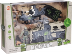 Akcijski vojaški set za male strateginje in stratege ponuja ure zabave na kopnem, v zraku in na vodi. V kompletu je vozilo dolžine 25 cm, figurice vojakov in bogata oprema. Za še večji doživljaj poskrbijo svetlobni in zvočni učinki, ki se aktivirajo s gumbom na orožju vozila. Zahvaljujoč prostim kolesom je vožnja gladka in pripravljena na vsako misijo.