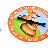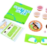 - Vsebina pakiranja: igralna podloga, kazalnik (kolo sreče), preveza za oči, modelček, 4 lončki mase (pribl. 55 g vsak), navodila