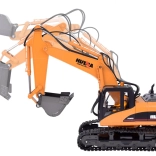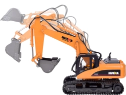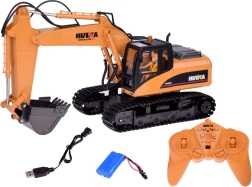 Odkrijte zabavo na gradbišču s podrobno izdelanim daljinsko vodenim bagrom HUINA v merilu 1:14. Model zvesto posnema pravi gradbeni stroj: kabina se vrti za 585°, roka in izteznik imata poln obseg gibanja, žlica se tekoče odpira in zapira. Mehke gosenice zagotavljajo dober oprijem na preprogi in gladkih tleh, zato je vožnja stabilna in enakomerna.