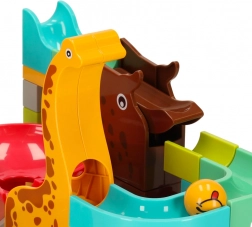Žirafa, krokodil in drugi motivi niso le okras – predstavljajo aktivne dele proge, ki naredijo vožnjo kroglic še bolj napeto.