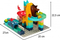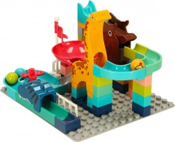 Skupaj z otroki zgradite svojo kroglično stezo in opazujte, kako se kroglice spuščajo po klancih, toboganih in spiralah. Živalice niso le okras – so del proge, zato je igra še zabavnejša in bolj privlačna. Komplet je odličen za razvoj logičnega razmišljanja in veselja ob dokončani gradnji.