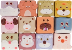 Odkrijte senzorične kocke z živalmi, ki so zasnovane za otroke od 6 mesecev za spodbujanje čutov in podporo razvoju. Vsaka kocka ponuja edinstveno barvno in teksturno kombinacijo: