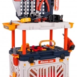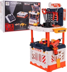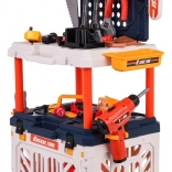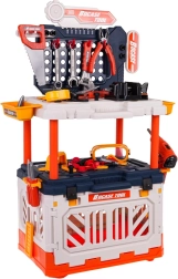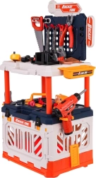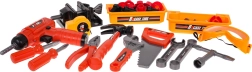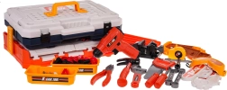 Set vsebuje realistična plastična orodja, kot so vrtalnik, kladivo, žagica in druga, ki spodbujajo otroško domišljijo.