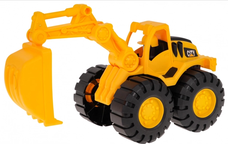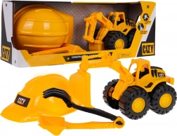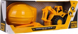 Bager ima ročno premično žlico in roko, ki omogočata upravljanje kot pri pravem stroju. Velika kolesa bagra omogočajo premikanje po katerikoli površini. Priložena je tudi čelada, ki pričara občutek pravega graditelja.