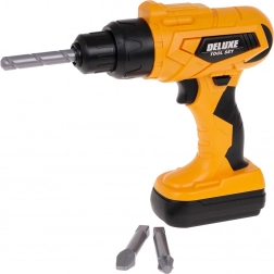 Otroški vrtalnik na 2× AA (1,5 V, niso v pakiranju) resnično zateguje in odteguje vijake, ima zamenljive bite in odstranljiv »akumulator«. Zvočni učinki še okrepijo doživetje igre.