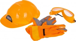Plastična čelada, zaščitna očala in rokavice spodbujajo varne navade pri igri na gradbišču in malim mojstrom dodajo samozavesten profi videz.