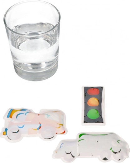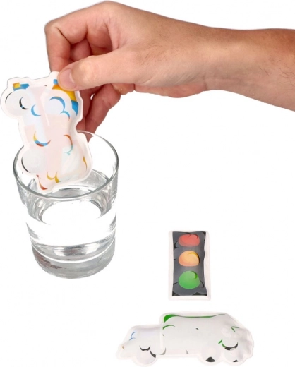 Nalepke ob stiku z vodo spremenijo barvo – otroke pritegne takojšen vizualni učinek in se radi k njim vračajo med kopanjem.