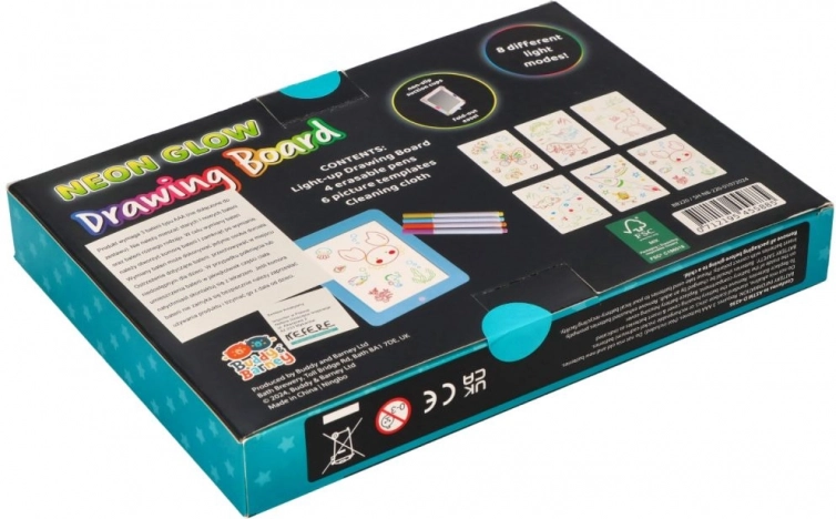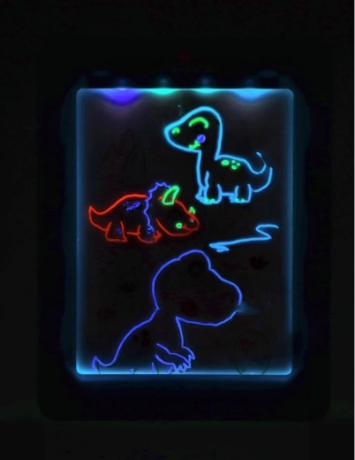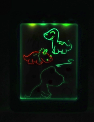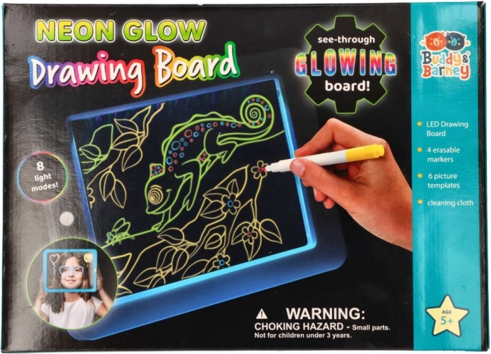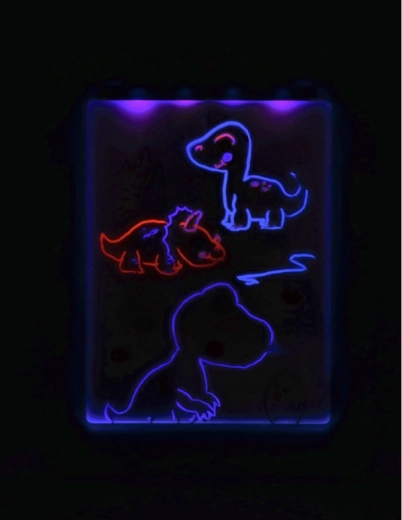 Neonska LED tabla spremeni vsako idejo v žarečo risbo. Zahvaljujoč sedmim načinom osvetlitve izstopijo poteze neonskih flomastrov, otroci pa spoznajo sodoben način risanja s svetlobo. Spodbuja domišljijo, potrpežljivost in vizualno zaznavanje, hkrati pa je intuitivna in zabavna.