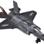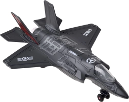 Odkrijte podroben kovinski model vojaškega letala F-25, ki združuje trpežno izdelavo z atraktivnimi funkcijami za otroke od 3 let. Po potegu nazaj se zahvaljujoč mehanizmu pull-back zapelje naprej. Ob pritisku na podlago se aktivirajo zvoki motorja in streljanja, v kabini pa se prižge LED osvetlitev, kar poveča realističnost igre.