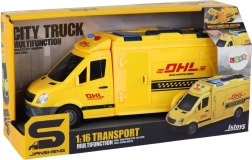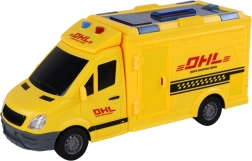 Naš rumeni dostavni avto v merilu 1:16 je idealna igrača za vse radovedne otroke. Zahvaljujoč trenjemu pogonu se to vozilo zlahka premika in spodbuja otrokovo domišljijo pri igri prevoza pošiljk. Opremljeno je z interaktivnimi funkcijami, ki vključujejo svetlobne in zvočne učinke, naj bo igra notri ali zunaj.