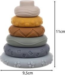 Mehke senzorične kocke Kruzzel so izdelane iz kakovostnega mehkega PVC, ki je varen za otroke že od 6 mesecev. Te kocke služijo ne le kot igrača, temveč tudi kot grizalo, kar jih čini idealno orodje za razvoj otroških čutil. Njihove nežne zemeljske barve dodatno pomagajo pri umirjanju otroka.
