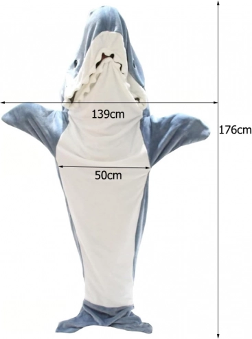 Odeja-pižama kostum za spanje morski pes je popolna izbira za hladne noči. Izdelek je ne le funkcionalen, temveč tudi izviren, zato je nepozabno in domiselno darilo.