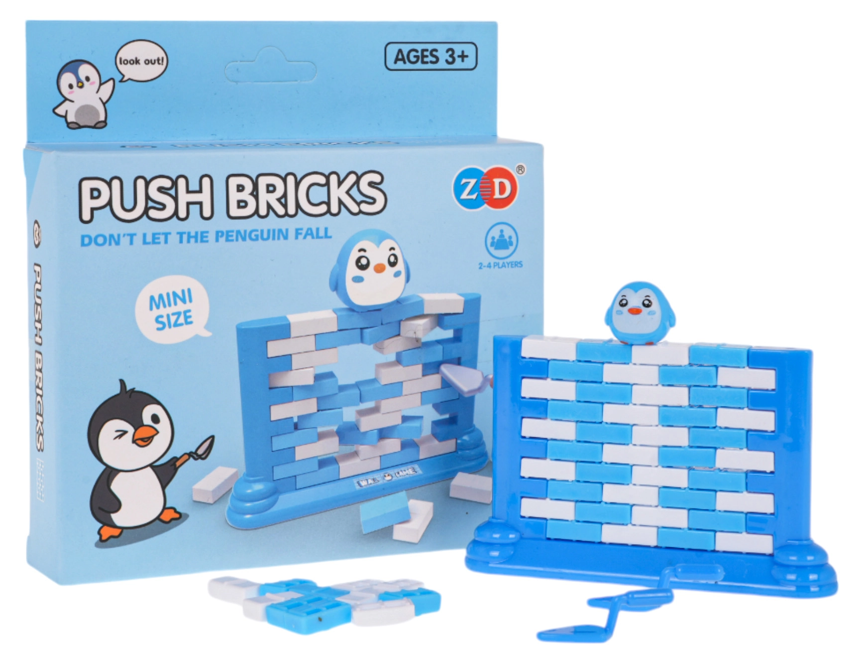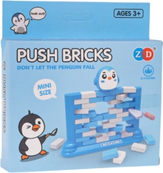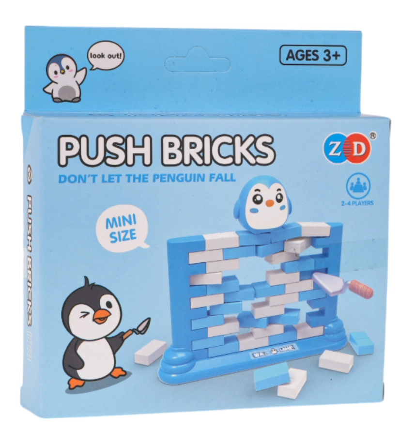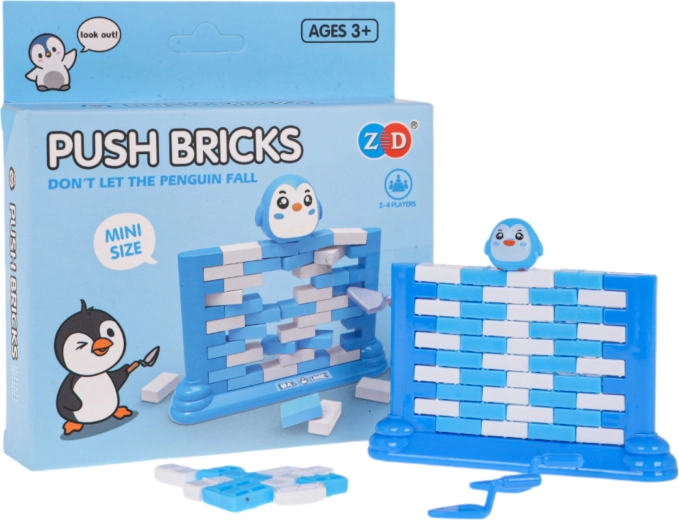 Zabavna spretnostna igra za otroke od 3 let in odrasle. Zgradite steno iz barvnih opek in jih s pomočjo majhne lopatice previdno izrivajte tako, da figurica pingvina na vrhu ne pade. Igra razvija koncentracijo, logično razmišljanje in koordinacijo oko–roka, hkrati pa odlično zabava vso družino in pomaga odpočiti se od zaslonov.