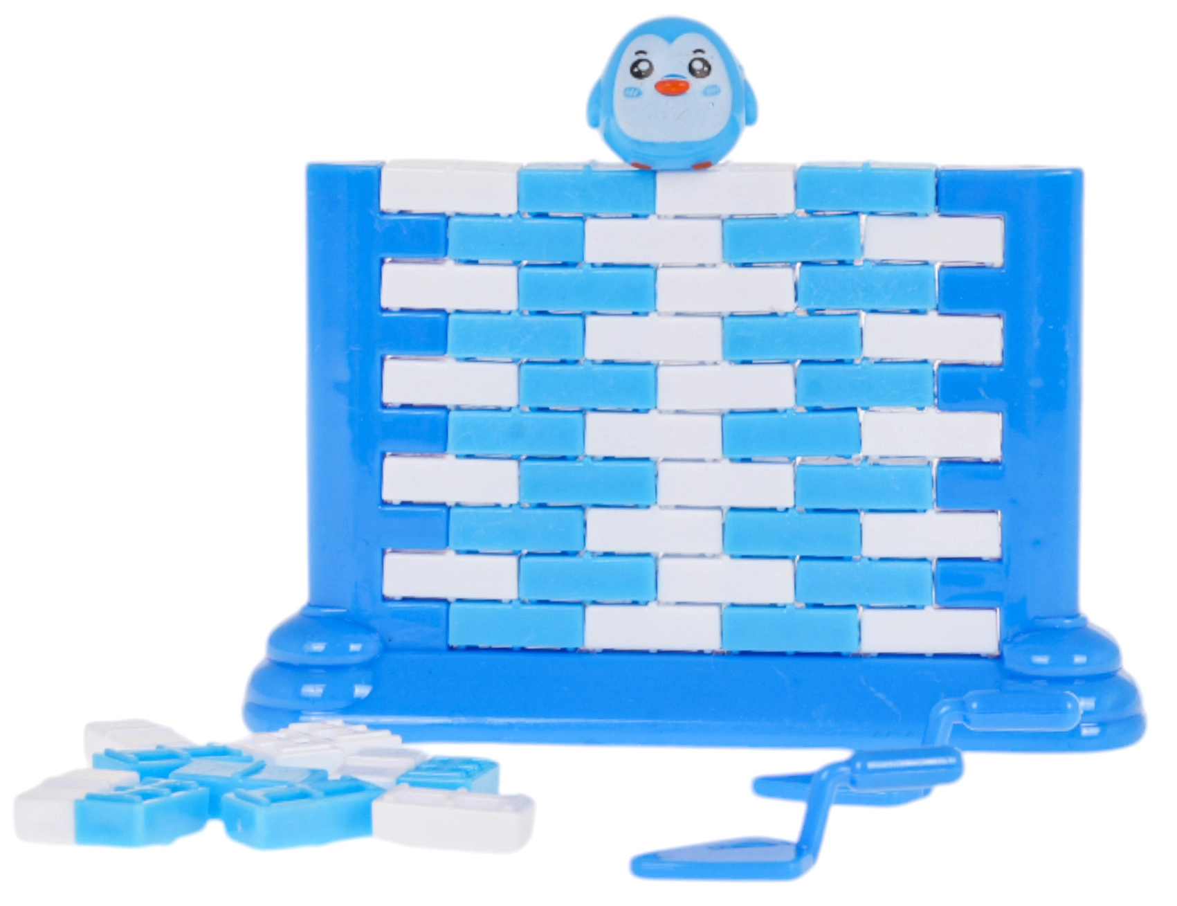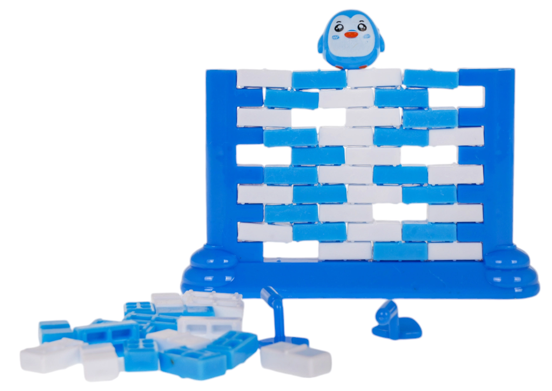 Ta družinska igra preizkusi vašo potrpežljivost in spretnost. Najprej postavite steno na poseben podstavek in na njen vrh namestite figurico pingvina. Igralci se izmenjujejo pri izrivanju posameznih opek z majhno »kelno« – tisti, komu pingvin pade, izgubi. Preprosta pravila, napetost v vsakem potezu in veliko smeha.