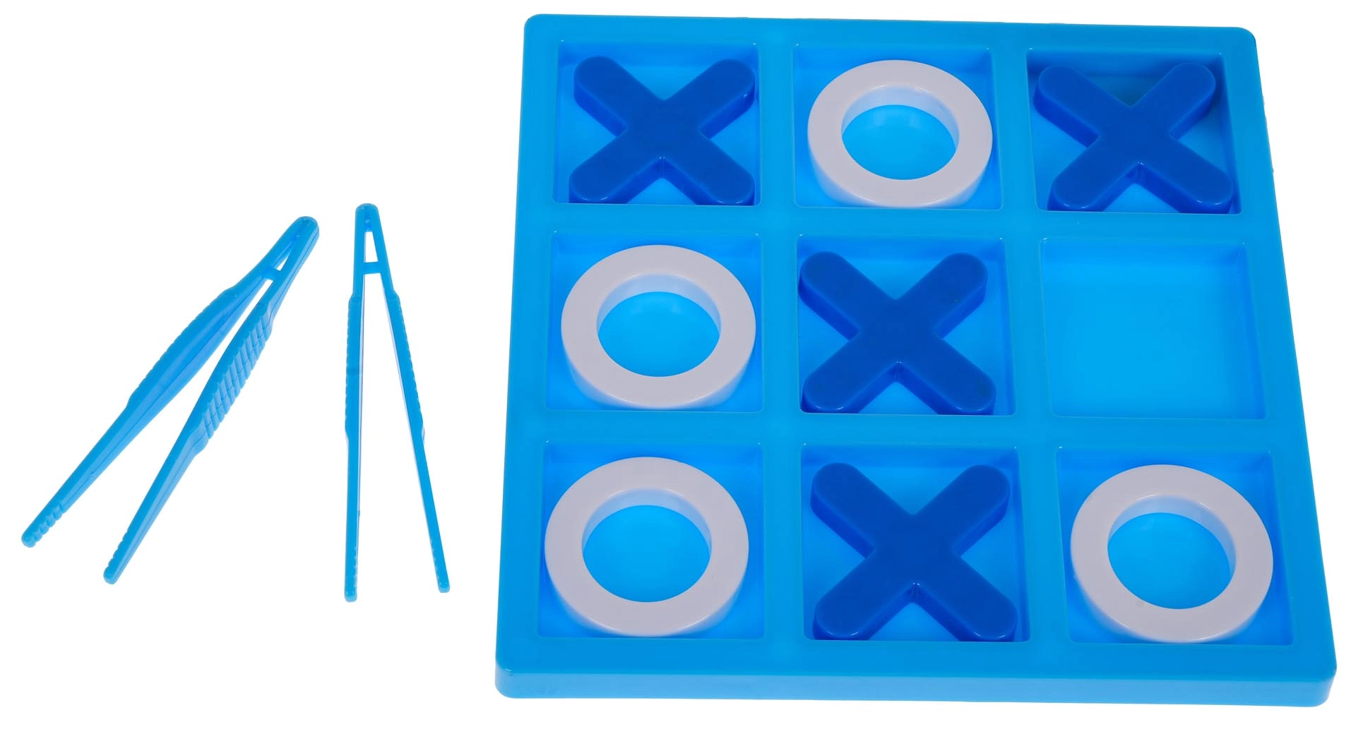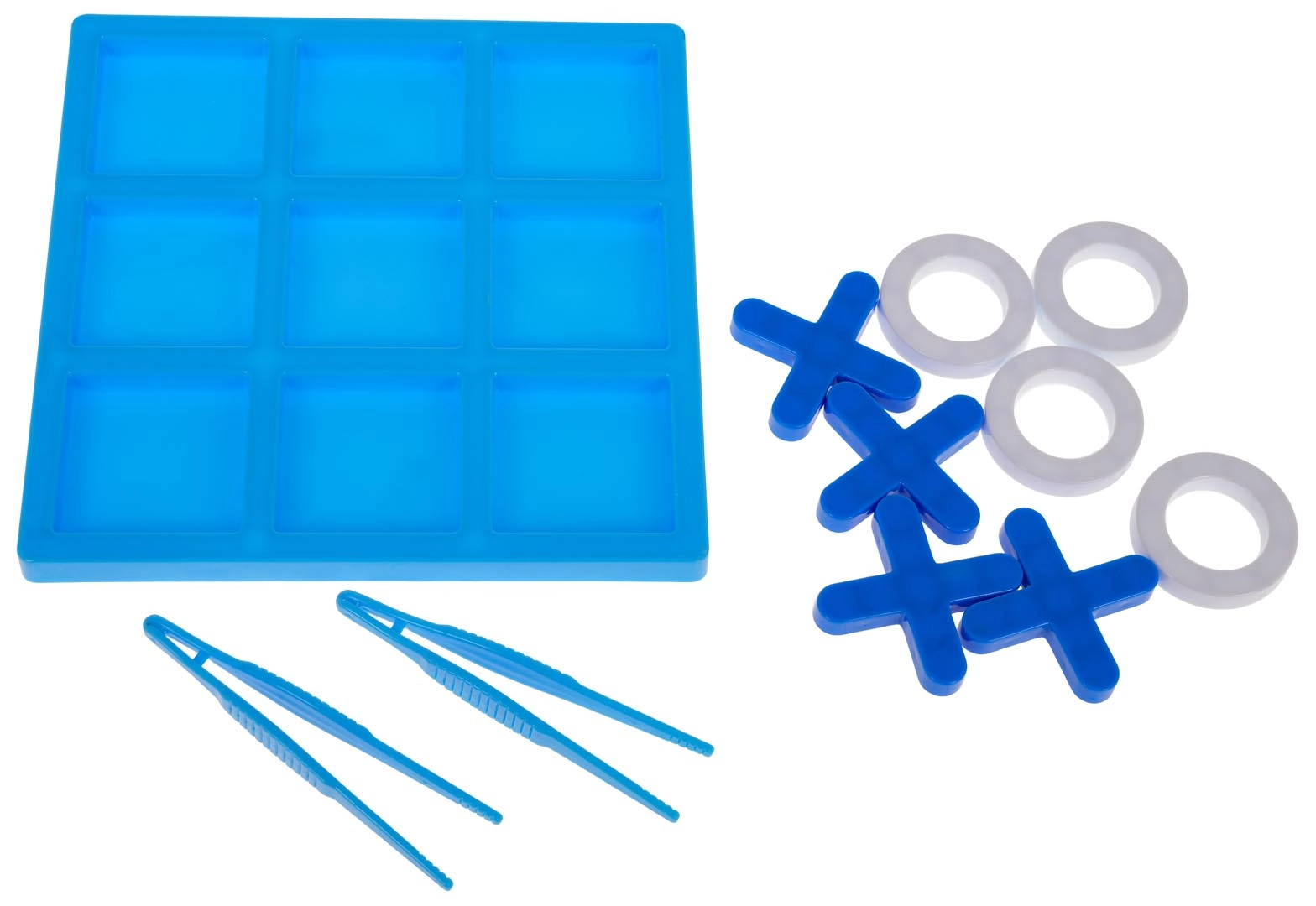 Plastična igralna plošča (9 polj), 4 krožci, 4 križci, 2 pinceti