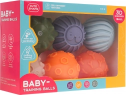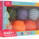 Set vsebuje šest različno barvnih in teksturiranih žogic, idealnih za otroke od 18 mesecev. Barvita paleta in raznolike oblike spodbujajo ustvarjalno igro in razvijajo senzorično zaznavanje otrok.
