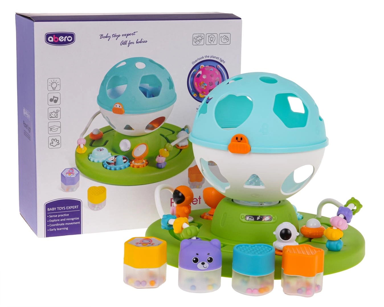 Interaktivni izobraževalni sortirnik z vesoljskim motivom za otroke od 18 mesecev razvija fino motoriko, logično razmišljanje ter zaznavanje barv in oblik. Svetlobni učinki in melodije spodbujajo čutno zaznavanje, medtem ko zobniki, labirinti in preklopni elementi ponujajo mnogo načinov igre. Priložene so 4 ropotajoče kocke različnih oblik, iz varnega in kakovostnega plastika.