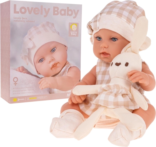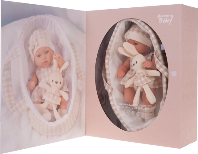 Ljubka punčka – dojenček z mehko prenosno košaro in plišastim zajčkom bo razveselila vsakega otroka od 3. leta dalje. Set je kakovostno izdelan, ima premične roke, noge in glavico, lahko snemljiva oblačilca ter tekstilno košaro z ročaji za udobno nošenje. Igra s punčko spodbuja fino motoriko in domišljijo.