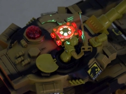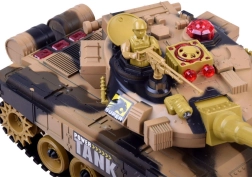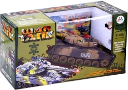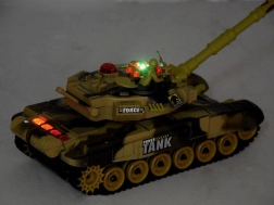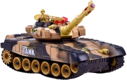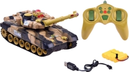 Ta daljinsko voden tank ponuja poglobljeno bojno izkušnjo: ob natančnem zadetku zaslišite zvok zadete tarče, na zadnjem delu nasprotnikovega tanka pa ugasne kontrolna lučka. Po treh zadetkih je nasprotnik približno 30 sekund izločen. Vrtljiva kupola omogoča streljanje v obsegu 360°, barvna LED osvetlitev pa izgleda odlično tudi v temi.