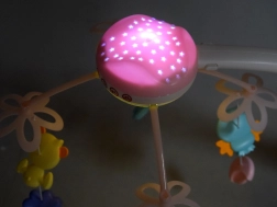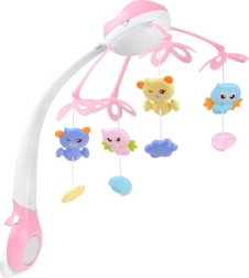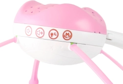Ta večnamenski vrtiljak združuje glasbeni mehanizem, nočno lučko s projekcijo zvezd in vrteče se igračke v nežnih pastelnih barvah. Z daljinskim upravljalnikom lahko vse vklopite ali utišate tudi iz sosednjega prostora, ne da bi motili dojenčka.