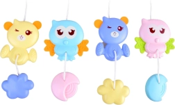 Barvne viseče figurice pritegnejo pogled in spodbujajo koordinacijo oči in rok med budnostjo.