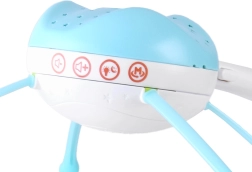 Vrtiljak je zasnovan tako, da podpira pomiritev in razvoj čutov že od rojstva. Vgrajeni projektor projicira na strop in stene nežne zvezdice, medtem ko glasbena skrinjica predvaja melodije, uspavanke, zvoke narave in živalic. Z daljinskim upravljanjem lahko vrtiljak vklopite ali utišate tudi iz sosednjega prostora.