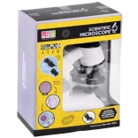 Ta prenosni mikroskop je popoln začetni laboratorij za otroke. Zahvaljujoč robustni plastični zasnovi, enostavnemu upravljanju ostrenja in vgrajeni osvetlitvi omogoča varno in udobno raziskovanje podrobnosti, ki jih s prostim očesom ne vidimo.