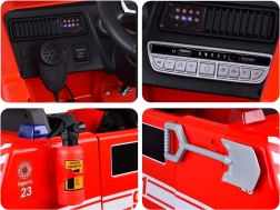 S tem fantastičnim električnim gasilskim avtom se bo vaš mali junak počutil kot pravi gasilec. To vozilo na akumulator je opremljeno z delujočimi lučmi in zvoki, ki prinašajo realističen vtis in navdušenje med igro. Klasična rdeča barva z belimi detajli bo navdušila vsakega otroka.