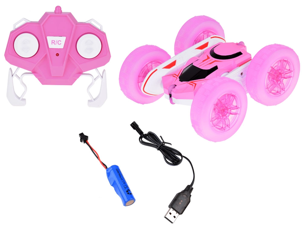 RC kaskaderski avto 360° s svetlečimi kolesi – roza FLORID Rolling