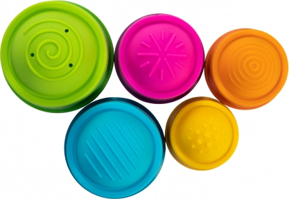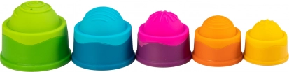 Mehki zložljivi klobučki Dimpl Stack od FAT BRAIN. 5 delov za čutno igro in razvoj fine motorike. Varni, trpežni in zabavni za majhne otroke.