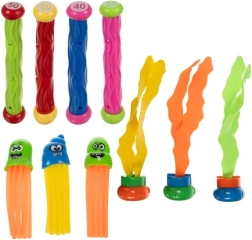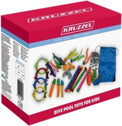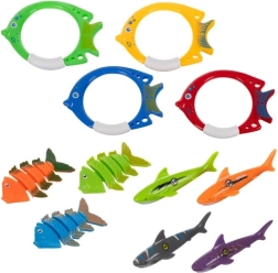 Ta celovit komplet za potapljanje in igre v vodi je zasnovan za zabavo in razvoj plavalnih veščin. Zaradi živih barv in različnih oblik otroci predmete pod gladino zlahka najdejo, pri tem pa vadijo orientacijo, potapljanje in koordinacijo gibov. Točkovne oznake na izbranih delih spodbujajo zdravo tekmovalnost in ustvarjajo mnogo igralnih scenarijev.